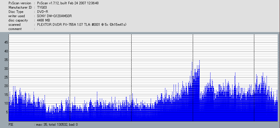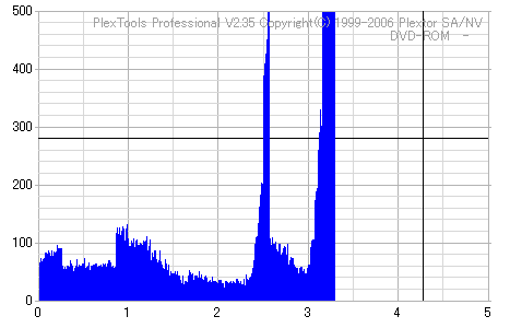 で、添付された計測画像ですが、これってTYG03を20AP1で焼いたものですか? (DVD-ROMという表記の部分が気になりますが……) にしても凄いエラーですね。ここまでのエラーは自分は見たことないですが。(そもそも誘電使ってPOFをカ ウントしたことがないんで……)