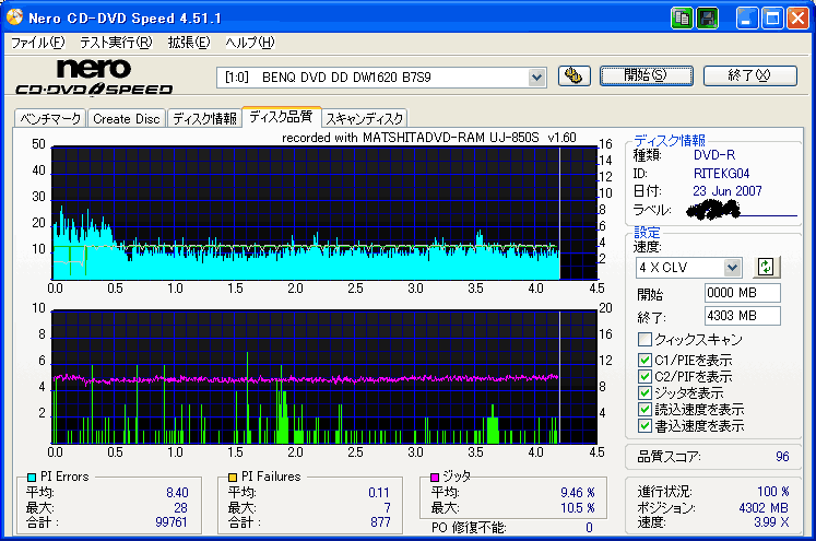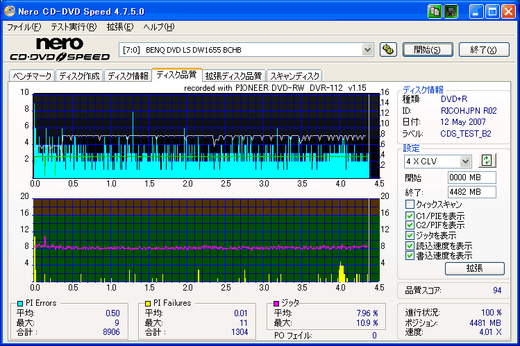 …あ、なぜかノートPCで焼いたのを計測してしまいました…orz 参考にならなくてすみませんが、ご勘弁を。m(_ _)m