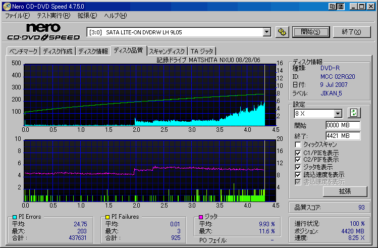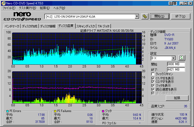 5枚目 TDK(誘電OEM)16倍速 8倍速で焼きました。 このドライブ、akiba pc hotlineに記事が載っていましたが、完売したのか記事が消えていました。