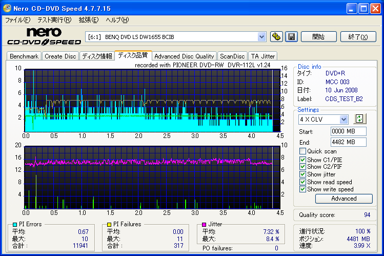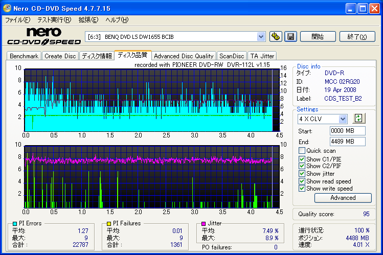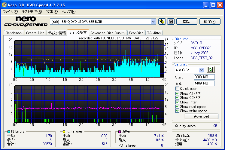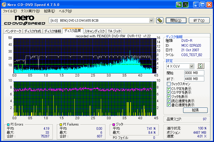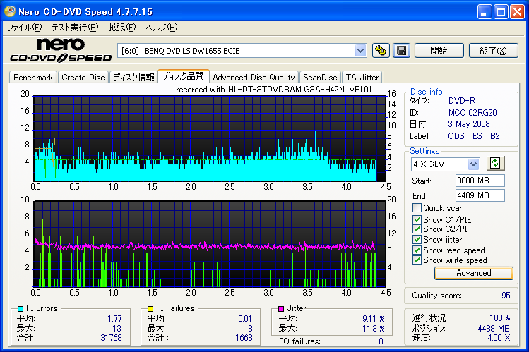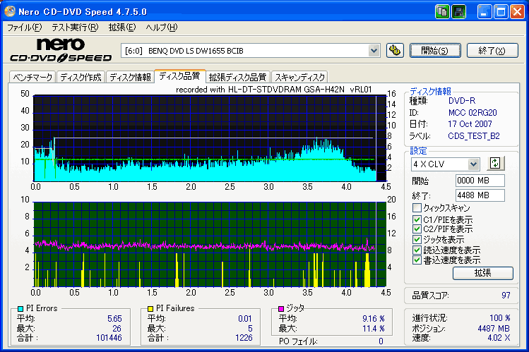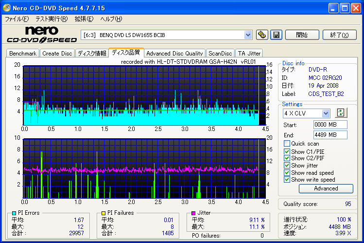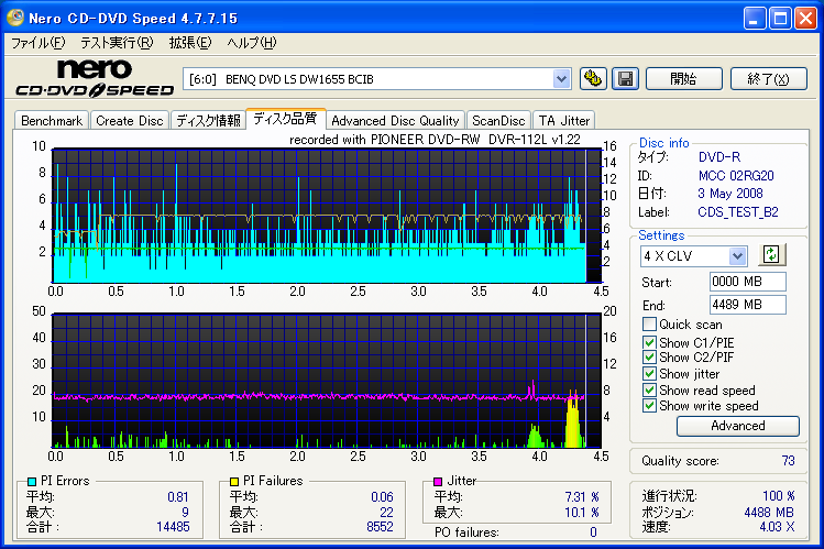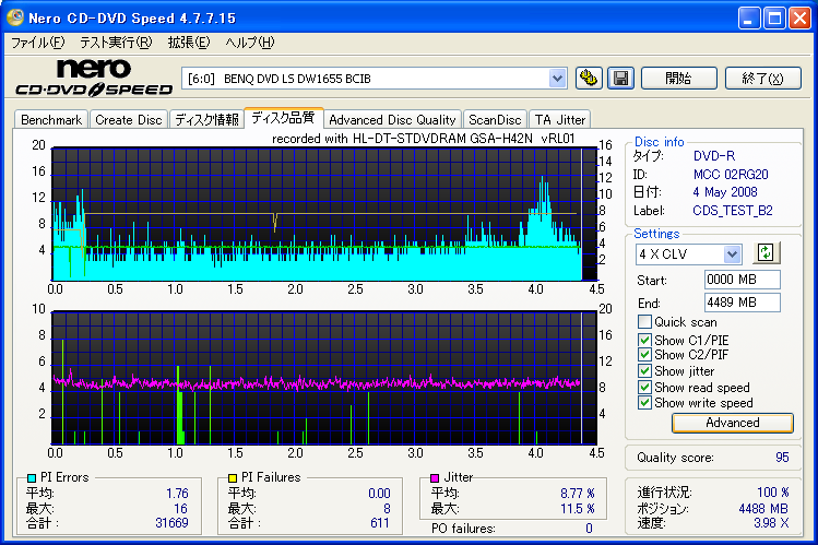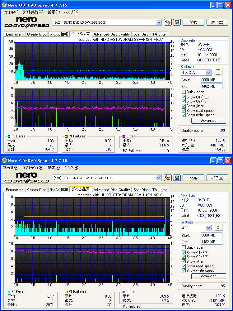 BENQドライブの結果だけ見ると良好なんですが、全体的に760Aでの結果が悪く唯一安定してるのがH42Nなんですが・・・。 これもジッター高いし、なにより見事にバームクーヘン何ですよ。