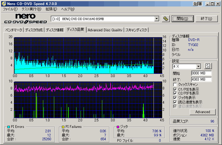 - うーん・・・BenQドライブのJitterは他のドライブで計測したJitterとは結構違う感じになりますからね。