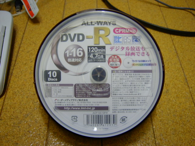 ローソン バリューライン DVD-R 8x CPRM ワイドレーベル VHR12DP1VL 原産地:台湾 JAN:4560275385814 Manufacturer ID: MCC 02RG20 CMC委託