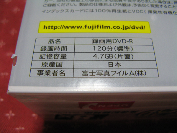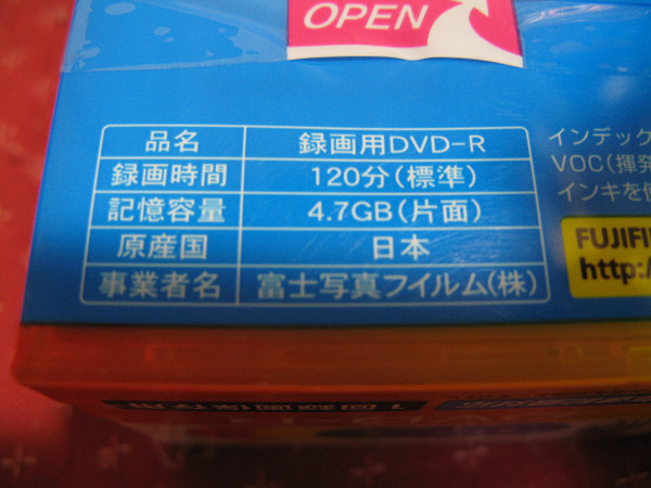 前回の VDR120HX5 と同等品かと思いきやよく見れば「4X」なのでFUJI純正の4Xではと(あるのかな?)思い期待しておりましたがなんてことない(失礼な…)誘電のOEMのTYG01でした。 まあ神時代の誘電が手に入ったと思えば上等でしょう。 ちなみに価格は5枚で198円(これも安!)でした。