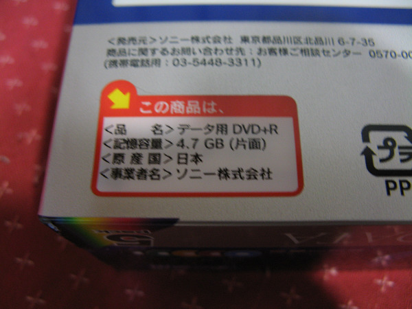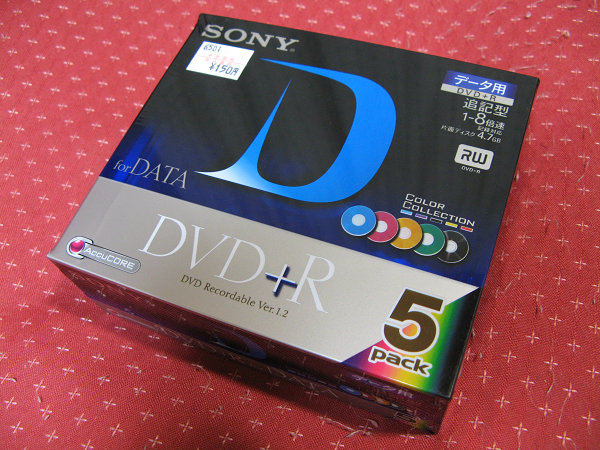 SONYなのでDEXON製、下手すればRITEKが出てくればと思い期待しておりましたが今回も普通に誘電のOEMのYUDEN000 T02でした。 ちなみに価格は5枚で150円と激安でした。 +Rは一般には人気がないからでしょうかネ まだあと14セット残ってました。