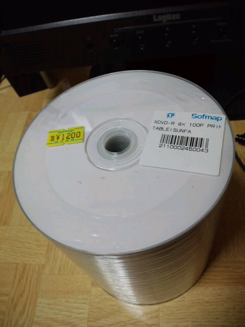 「Sun Face DVD-R 8倍速」というような張り紙で100枚1200円で売られていた見慣れないブランドのラップ巻きバルクDVD-Rが売ってました