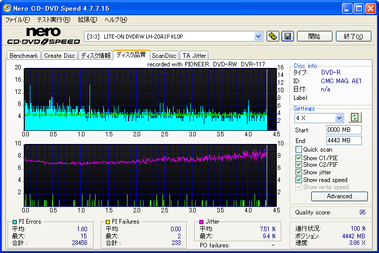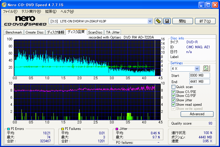 手持ちのDVDドライブでIMGBURNで適当なイメージファイルをソニーオプティアークAD-7220Aで8x焼き、PIONEER DVR-117で12x焼きしてみました