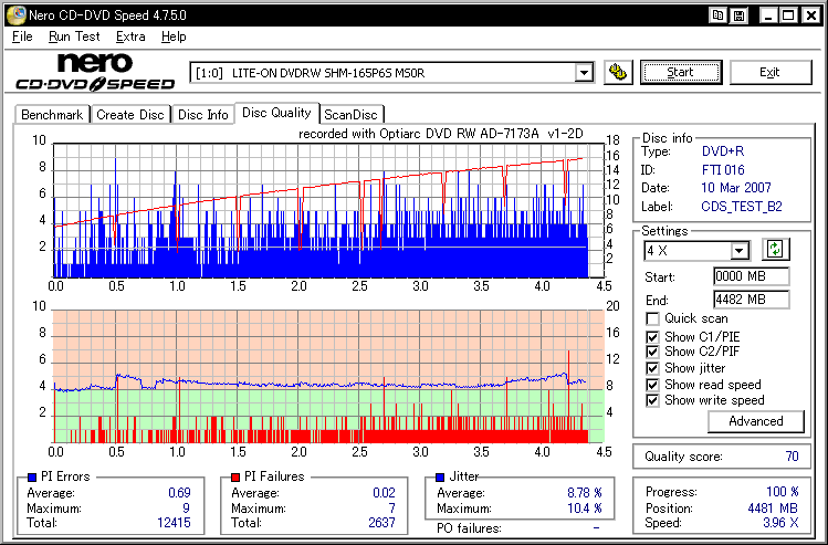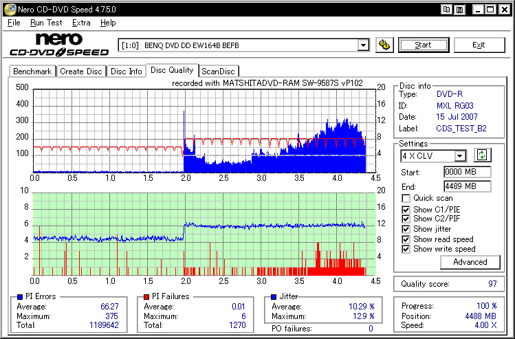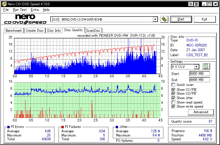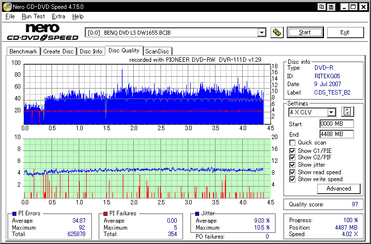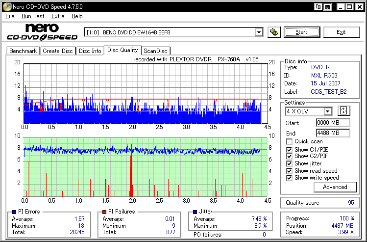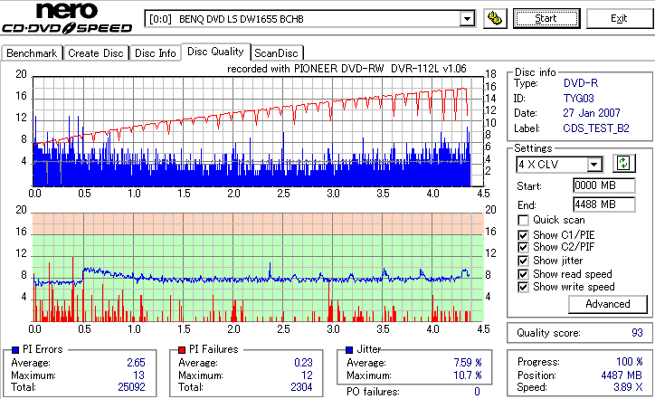 フカミさん所に出てた謎の誘電委託盤のバルク品と思われます。 色素とか誘電そのまんまっぽい感じなんですが、刻印が微妙に違ってMIDだけマクセルっていうメディアです。 SW-9587の結果とか見てるとやっぱ無理がある模様。普通にTYG02で焼かせた方が良い気がします。