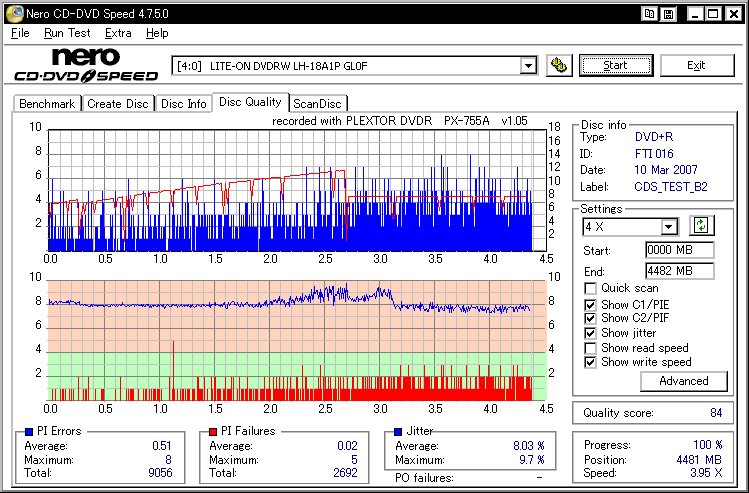 MIDはMXL RG04。ビックカメラ大宮店で10枚\1120。 30枚スピン(\2980)や50枚スピン(\4480)も出てました。 8倍に比べPIFはかなり低くて良い感じなんですが……8倍と同じく外周の方でPIEの挙動がおかしくなる傾向にあります。 カラーミックスだけに5種類のロットが混入してるはずなんで、そろそろハズレ引いただけとかの言い訳は効かない気がします。 台湾製になって明らかに品質落ちてますね。 まあ、それでも変な台湾AZO系メディアよりは良い結果ですけど。