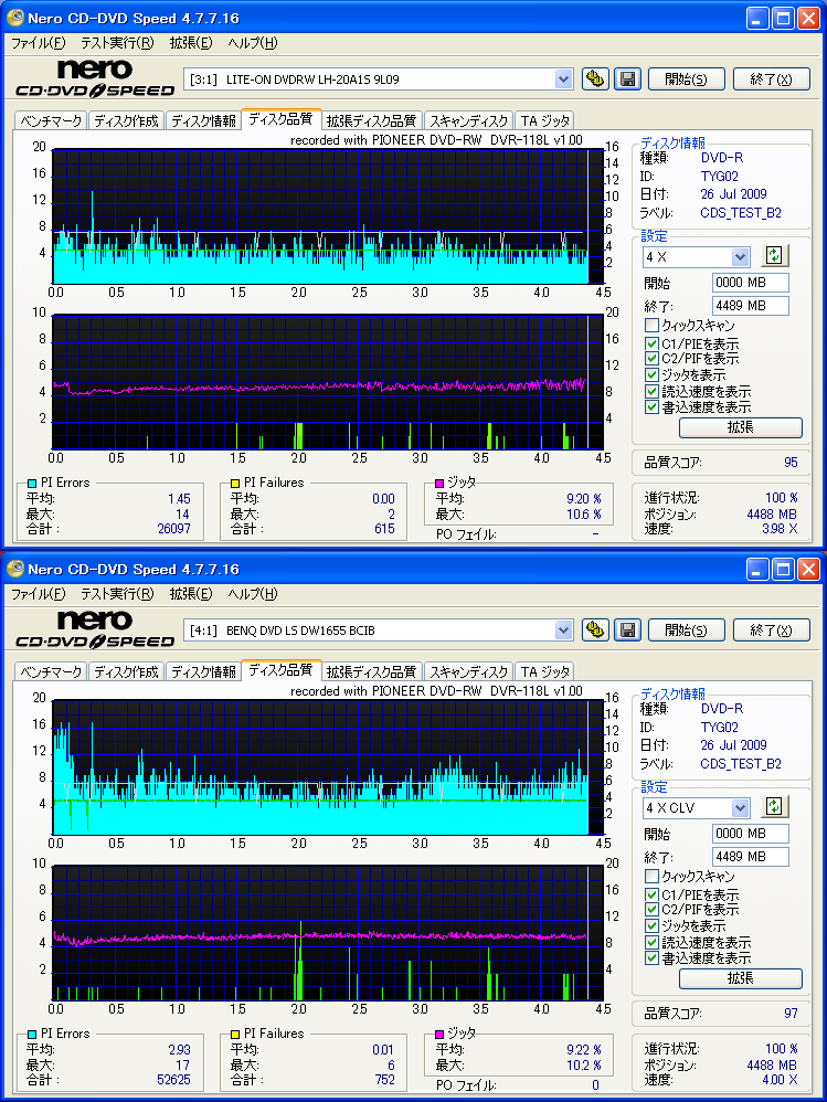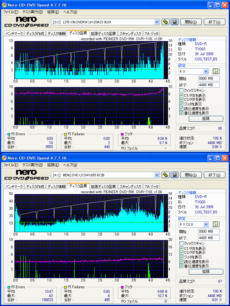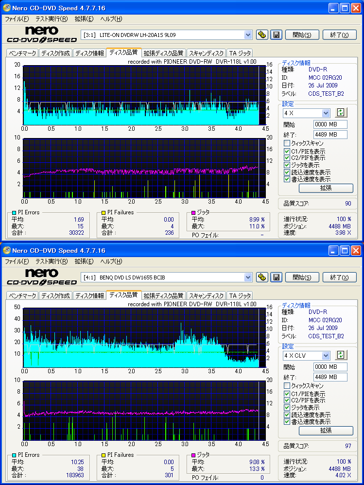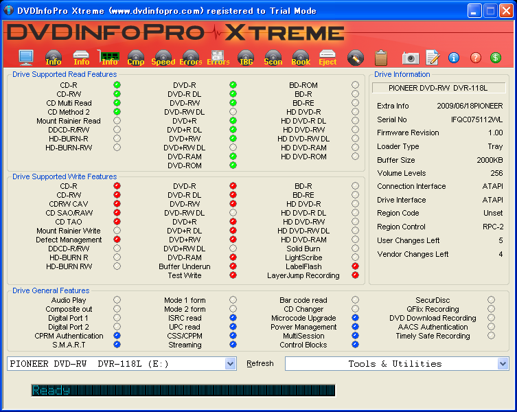 確かにDVR-118Lです チップがMediatekに変わったとの情報もあったので 計測出来るかなと小さな期待もあったのですが・・ CD-DVD Speed、DiscSpeed両方動きませんでした。