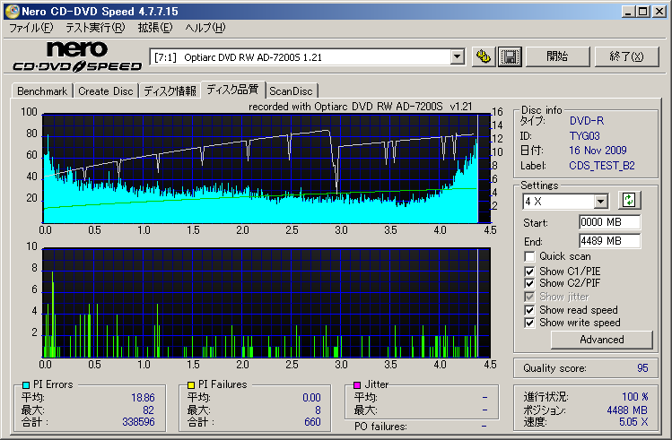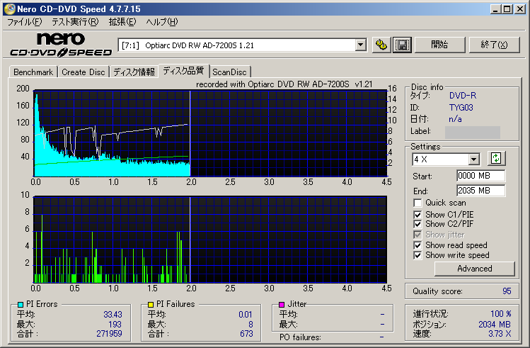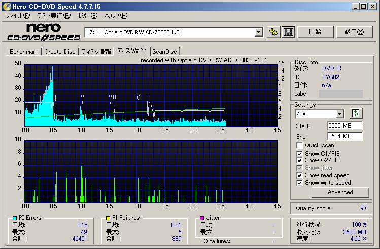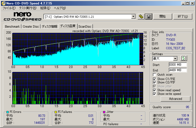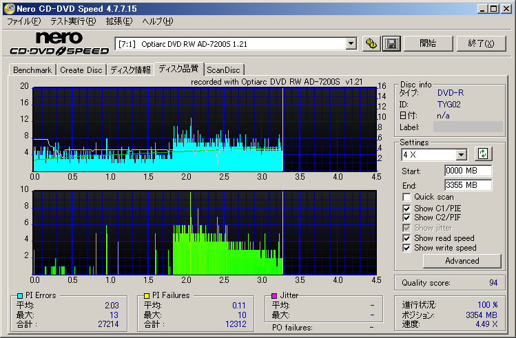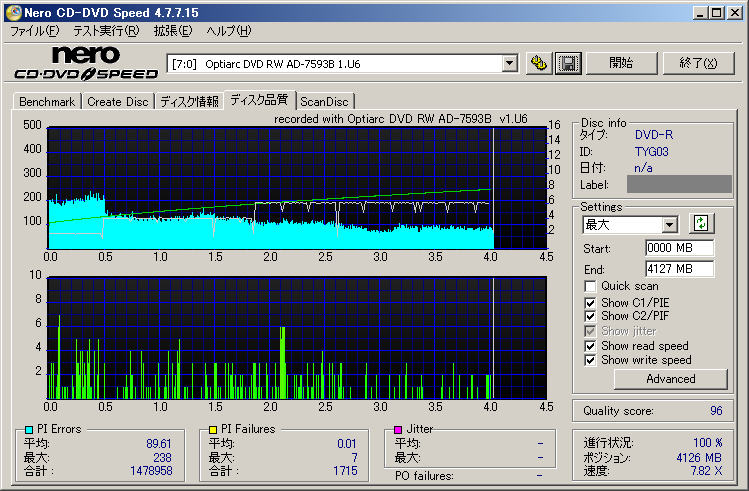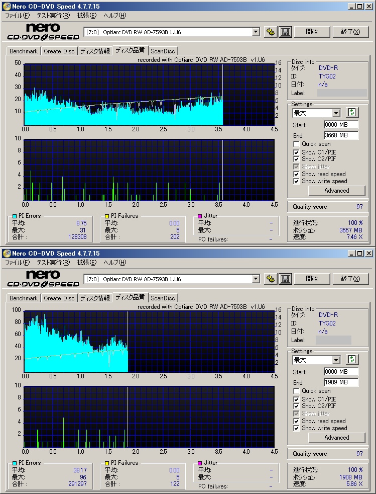ドライブの性能のためかメディアの品質にも敏感の ようです。TYG03 が TYG02 より品質がよくないだけ でなく、TYG02, TYG03 ともメディア自身の品質の ばらつきも大きくなってきているようです。