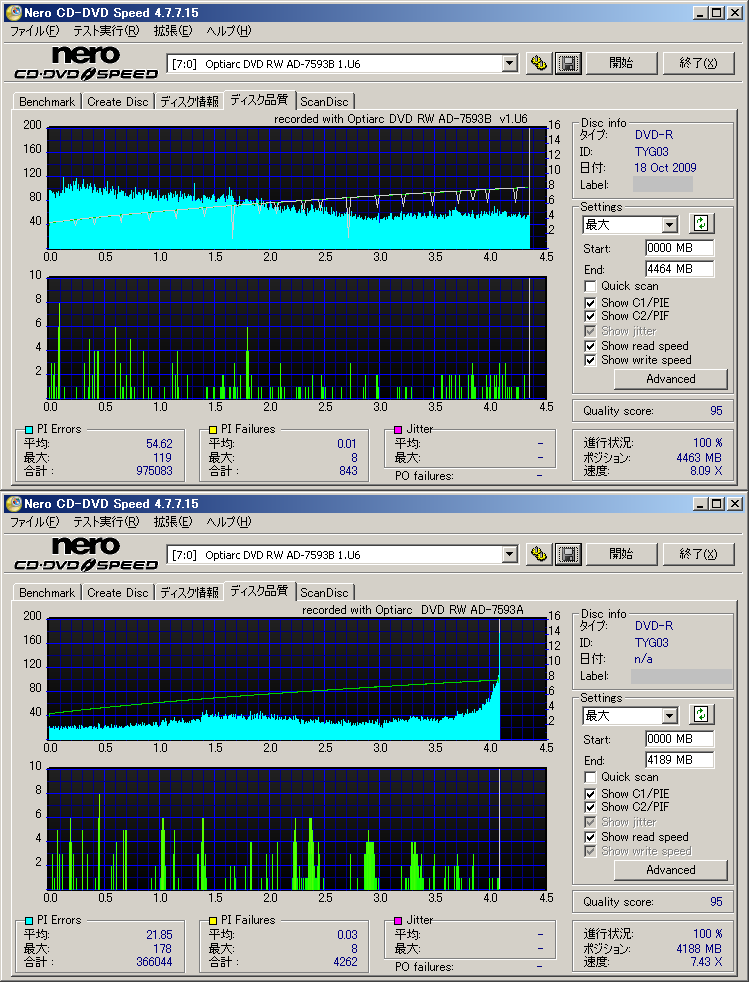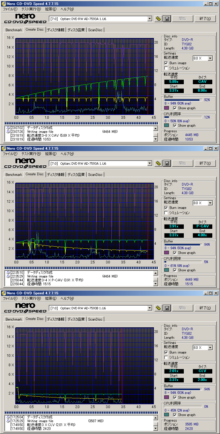P.S. 関係ありませんが、なぜかドライブの情報で 何もしていないのに 型番が AD-7593A になったり AD-7593B になったりしています。(?_?)