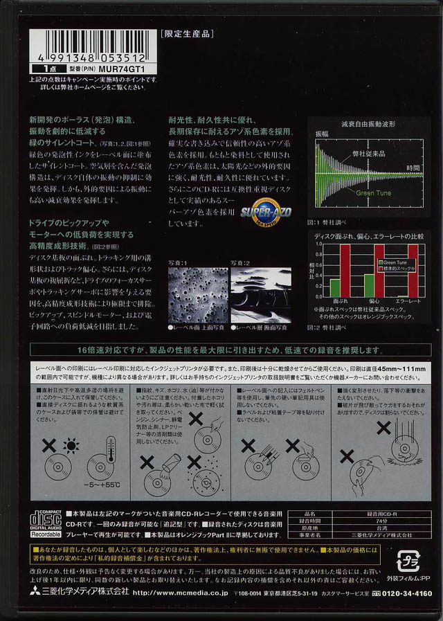 三菱化学メディア "GREEN TUNE" CD-R AUDIO For Mastering 74min