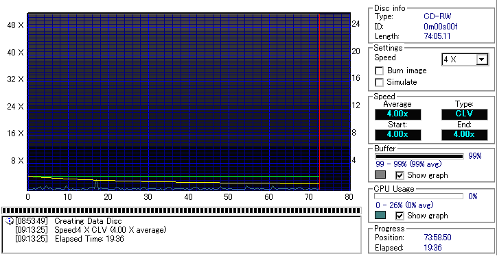 記録品位は安定しており、Jitterも特に跳ね上がるような点のない良好な結果です。 最近の互換AZOと呼ばれるSuperAZO採用のものはC1エラーが多くいまいちであるものが多かったのですが、 GREEN TUNEの方はエラー値的には良好な模様です。 ただ単にデータを焼きたいなら誘電master使えばいいって話ですが、 レーベル面側に施された振動防止コートにより余計なノイズが乗らないという真髄とも呼ぶべき追加要素がありますので、 単純にエラー値で割り切るようなものでもないんでしょう。 まあ、筆者にはそんな細かい音の違いは判らないわけですが……_| ̄|○ SuperAZOですから耐久性にも優れていると思うので、マニアな人には結構良いものなんじゃないでしょうか。 |