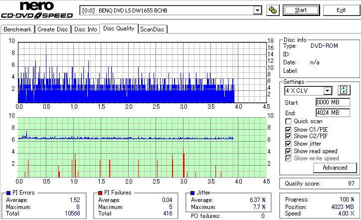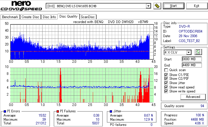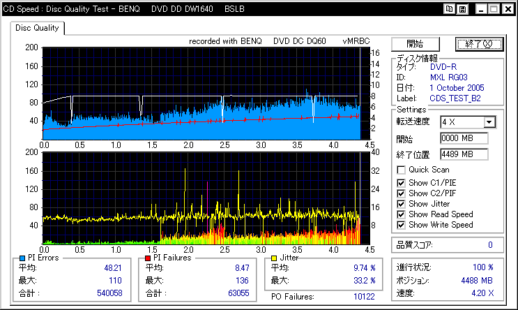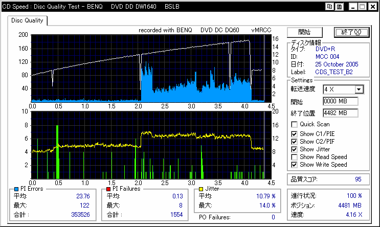 Jitterも全体的に高いのが判りますね。Jitterが12%を超えるようなディスクも使わないほうが身のためです。