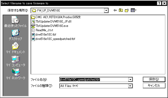 通常、改造後のファームはファイル名末尾に_Speedpatchedという文字列が付加されて保存されます。
