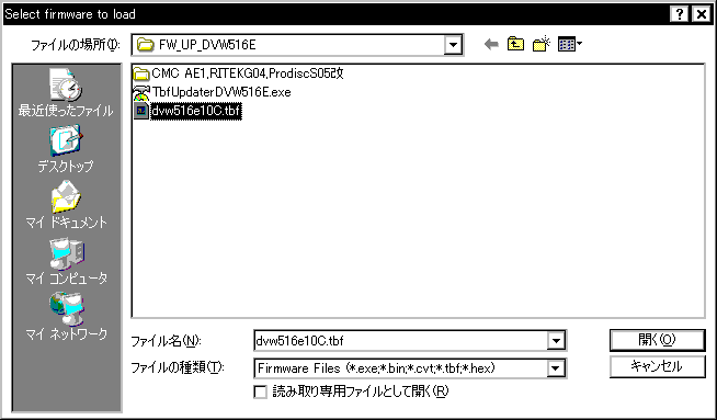 但し、PLEXTORやTEAC系のドライブに代表されるようなアップデーターファイルとファームデータが別ファイルになっている形式のものは