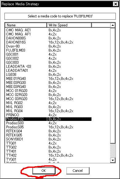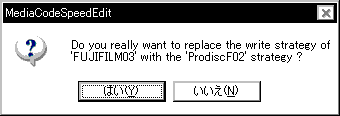 (一応日本語訳しておくと、『貴方は本当に'FUJIFILM03'のストラテジを'ProdiscF02'のストラテジと入れ替えることを望みますか?』