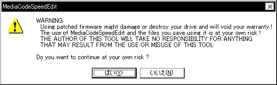 『注意:改ファームウェアを使用することでドライブに負荷がかかったり、故障したりする可能性があります。