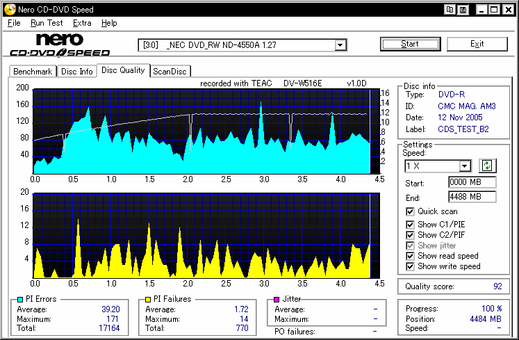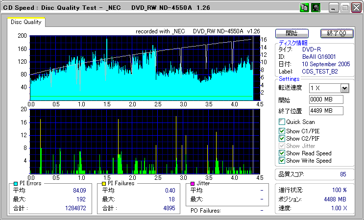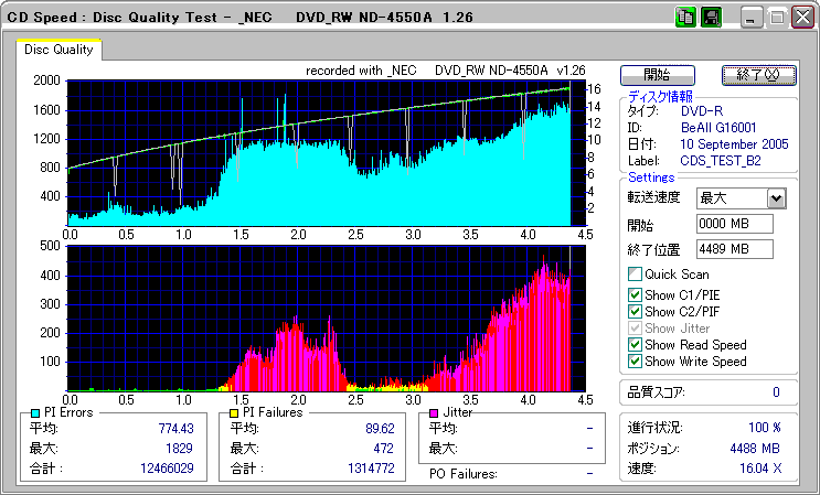 16x計測。どちらかというとDVD-ROMドライブのようなエラーの出方になります。