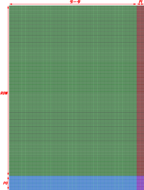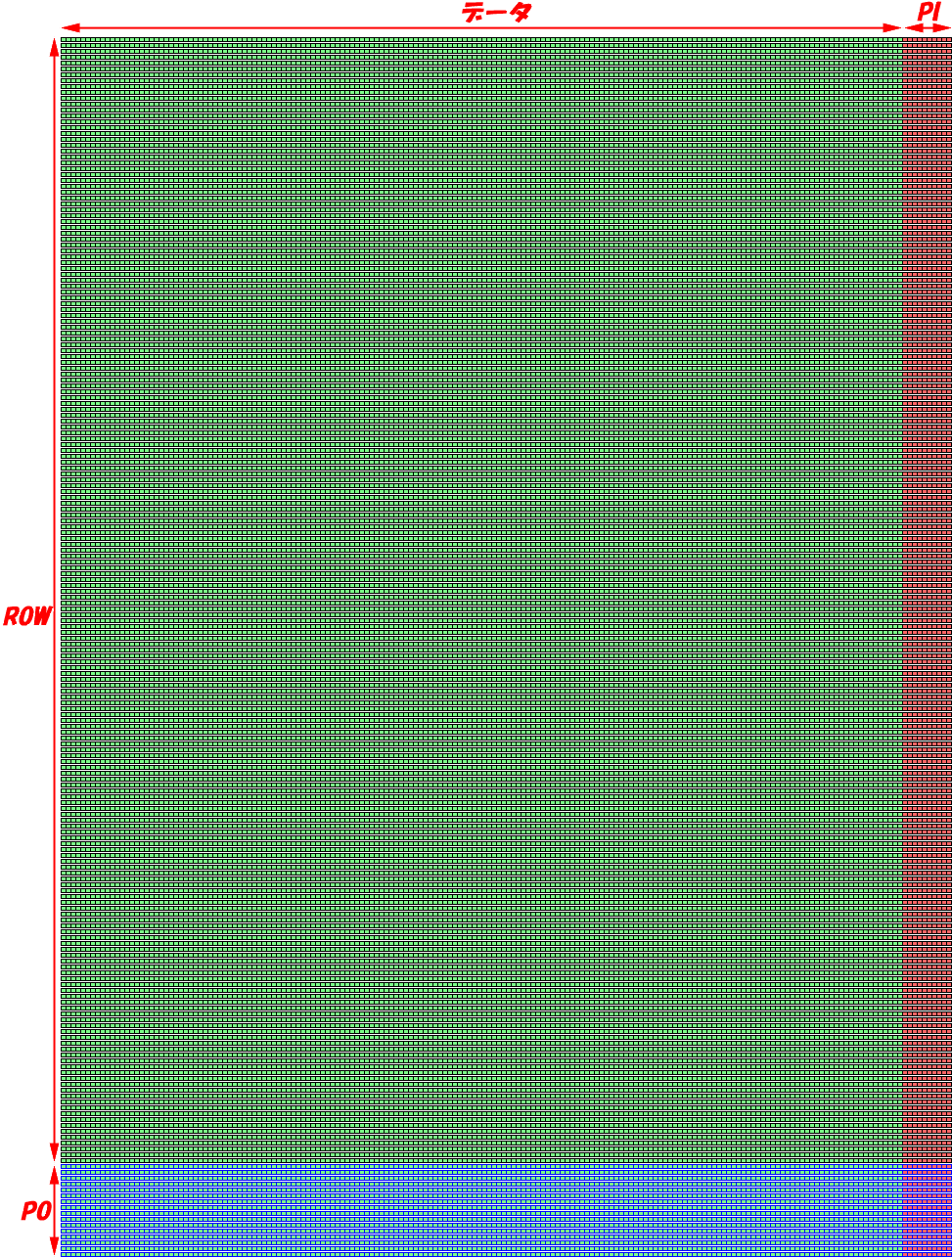 後ろから16本のROWはPO(Parity Outer)と呼ばれ、ROWそのものがまるごとパリティになってます。