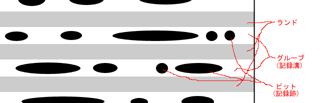 (ただ、実際のランド・グルーブ方式はグルーブ部分だけでなくランド部分にも記録できたりしますしアドレスエリアなんてものも存在しますので、正確には微妙に異なります)