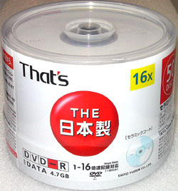太陽誘電株式会社はCD-Rを世界ではじめて製造したメーカーで、DVDメディアにおいても世界でトップクラスの品質を誇る日本のメーカーです。太陽誘電製のDVD-Rディスクは全て国内の自社工場で製造され、自社のブランドとして『That's
