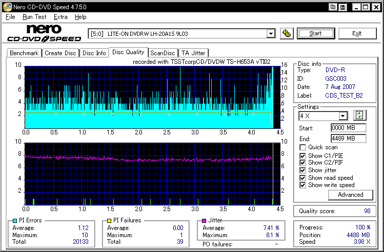 CDSHELPERはNero CD-DVD Speedの計測グラフを読み込んで画像評価し、ベンチマークスコアを出すソフトです。