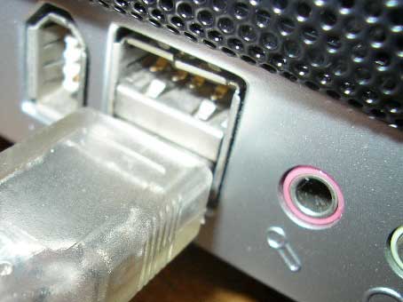 外付けタイプのドライブは一般的に形状は機種によって大きく異なりますが、基本的な使い方は一緒です。 外付けの種類としてはIEEE1394やUSB、LAN等がありますがここでは現在最も主流となっているUSB接続タイプのものを扱います。 ![]() 背面はだいたいこんな感じ。 ![]() 電源スイッチと、電源コードを挿す部分、それとUSBケーブルを挿す部分がついています。 1.電源コードを挿してコンセントにつなぎましょう。 っていうか、当たり前です。 2.ドライブのスイッチを入れましょう。 これも当たり前です。気をつける点は、電源を入れるのはパソコンに接続する前にした方が良いということです。先に接続してから電源を入れるとパソコン側がドライブを認識してくれない場合があります。 3.USBケーブルをドライブ本体、パソコンの順に接続します。 ![]() USBケーブルのこの形状の端子の方をドライブに接続します。端子の左右がへこんだ方を上向きで接続します。 ![]() ![]() 難しいことは何も無いと思います。しっかりと奥まで差し込めばOKです。 ![]() 今度はパソコン側。平べったい方の端子を接続します。 ![]() ![]() これも至って簡単です。 後はOS側が自動的にドライブを認識してくれます。 |