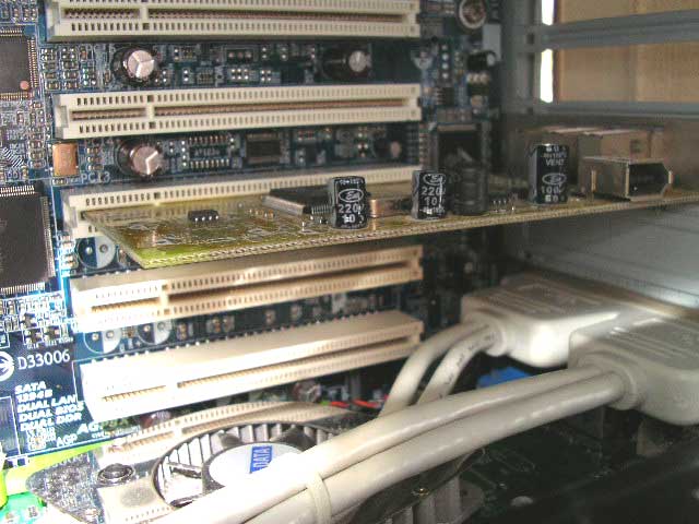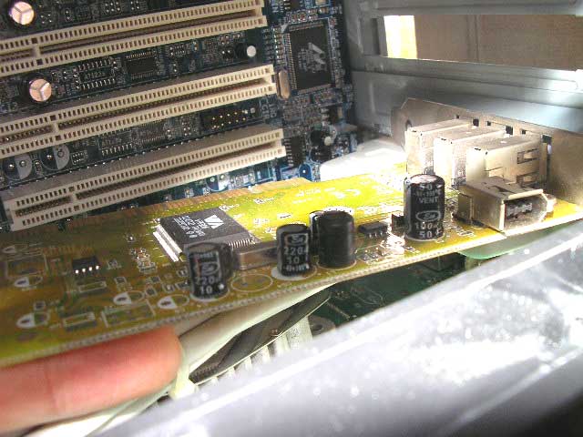 ドライブ接続時、タスクバー右下に「高速ではないUSBハブに接続している高速USBデバイス」というポップアップ表示が現れる場合は、お使いのパソコンのUSBハブがバージョン1.1以前の規格であることが予想されます。 では1.1とは何ぞや、って話。USBには同じ形状の端子を使っていながら1.0、1.1、2.0等のバージョンが存在し、最大転送速度で言うと1.1は12Mb/s(秒間約1.5メガバイト)、2.0は480Mb/s(秒間約60メガバイト)という規格になっています。これらはハード側に依存するのですが、DVDの等倍速の転送速度が秒間約1.3MB程度ですから、USB1.1では1倍速で転送するのがやっとという話になります。 何が言いたいかというと、USB1.1までしか対応していないパソコンではいくら16倍速のドライブを買ったところで実際は0.9倍速までしか出ないということです。 なら対応させるにはどうしたらいいって話ですが、最も手軽なのはPCカードやPCIスロットを用いてUSB2.0に対応した端子を増設してしまうという手段です。 ・PCIスロットを利用してIEEE1394ポートを増設する ![]() これは玄人志向より発売されている、PCIスロットにIEEE1394の端子を増設するためのボードです。 メーカーによって違いますが、だいたい\2000〜\3000くらいで売っています。USB2.0のものは\1000以下のものもあります。 ![]() パソコン裏側の画像です。なんか蓋みたいになってる部分がたくさんあります。このカバーを外して端子を増やしてやるわけです。 ![]() パソコンの内部基盤にはこのような拡張端子が用意されています。 但し、メーカー製スリムタイプのパソコン等だとこれが用意されていない場合があります。 ![]() ここに先ほどのボードを取り付けるわけです。 ![]() しっかりと差し込んでネジで固定します。 ![]() で、こんな感じに端子が増えているわけです。後はパソコンを起動して製品に付属のCDよりドライバをインストールしてやり、パソコンを再起動すれば端子として認識されているはずです。 ただ、パソコンの中身いじらなきゃいけないので少し敷居が高いですね。 あと、当然のことですが作業中はパソコンの電源切ってコンセントも抜いてください。感電します。 |