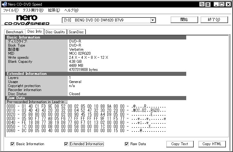 これらのメディアコードはCDSpeedやDVDInfo等のソフトを使うことで確認できます。