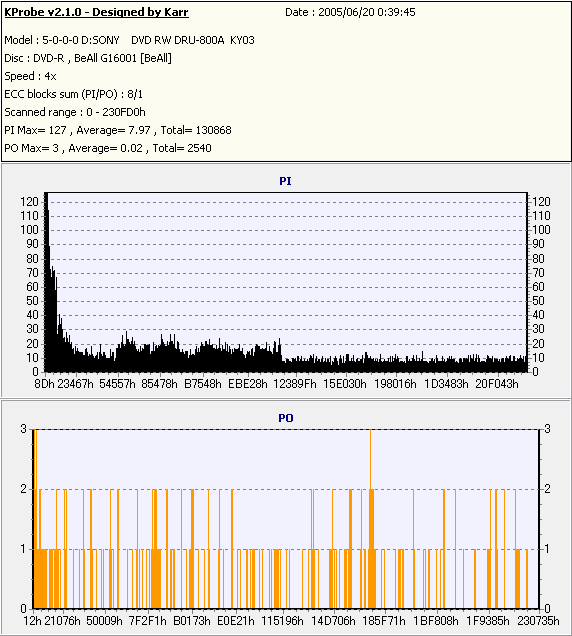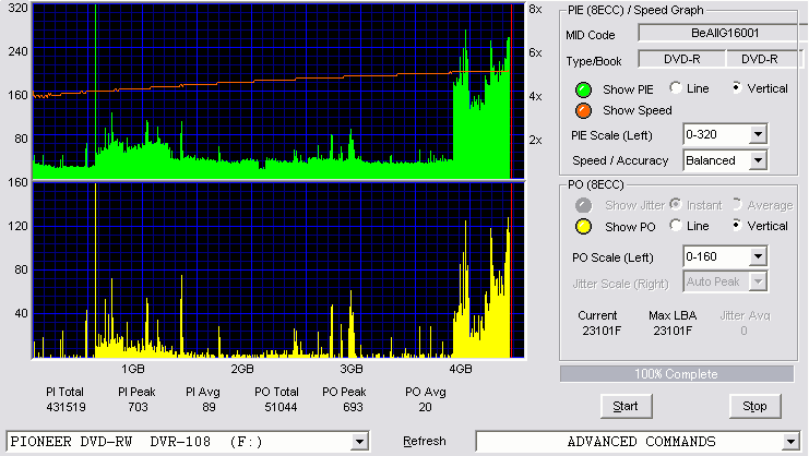 DVDInfoPro + Pioneer DVR-108のPI/PO Test(PIE/POE)