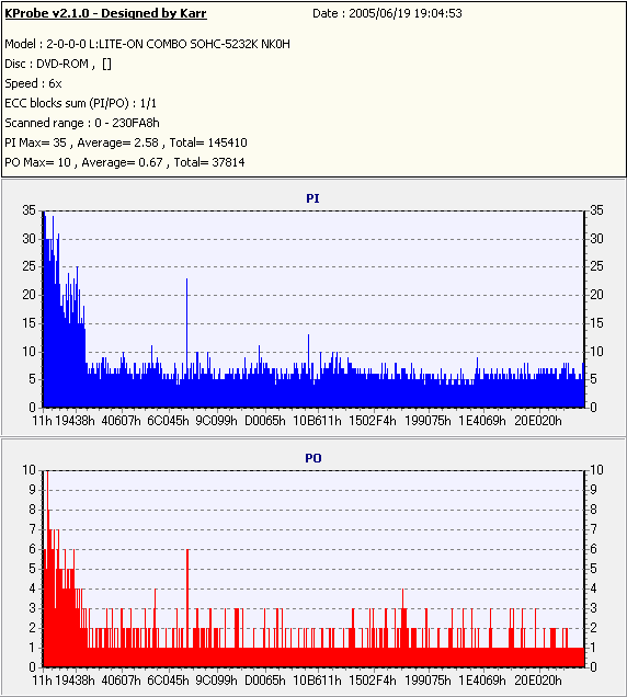 Kprobe + LITE-ON SOHC-5232Kでの1/1ECC Sum 6x CAV計測