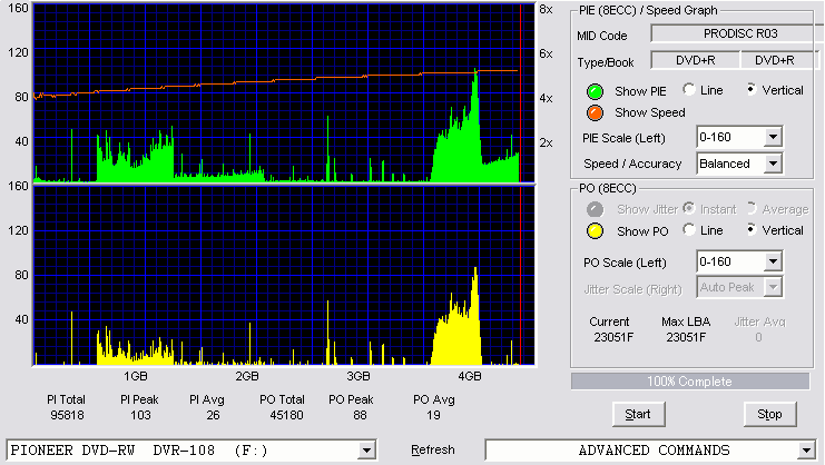 DVDInfoPro + Pioneer DVR-108のPI/PO Test(PIE/POE)