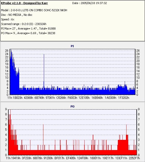 Kprobe + LITE-ON SOHC-5232Kでの1/1ECC Sum 6x CAV計測