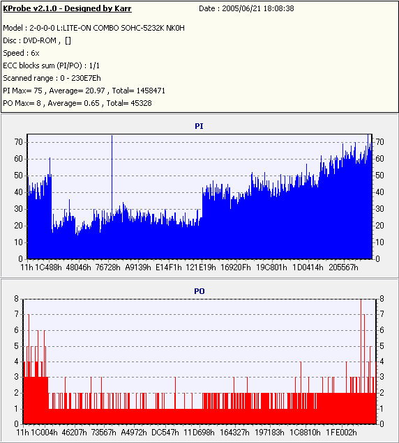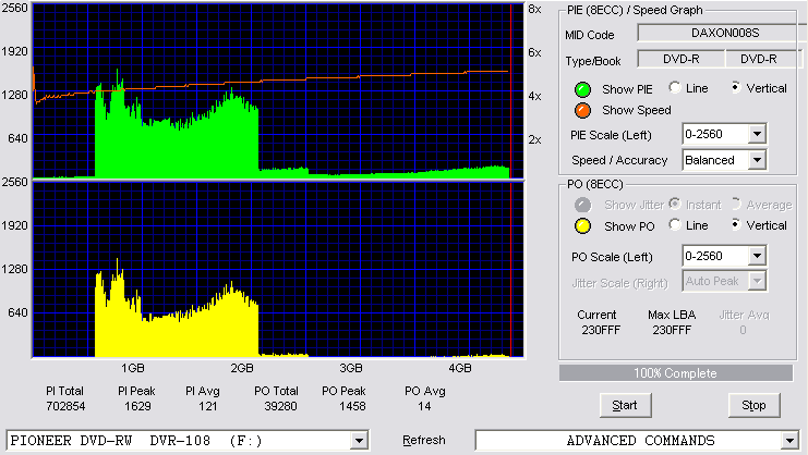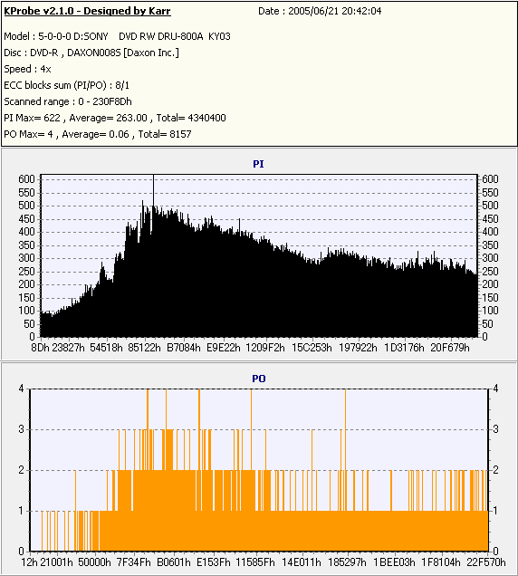 DVDInfoPro + Pioneer DVR-108のPI/PO Test(PIE/POE)