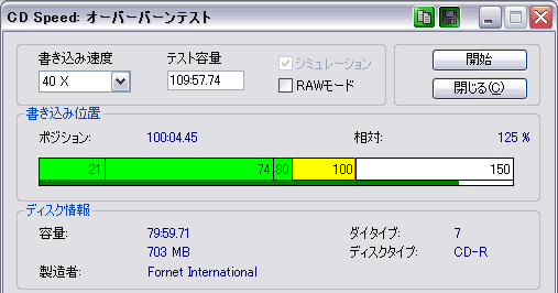 結局まともに焼けた99min対応ドライブは1つもなく、このメディアは99min用としてはどうだろうか、という結論に。