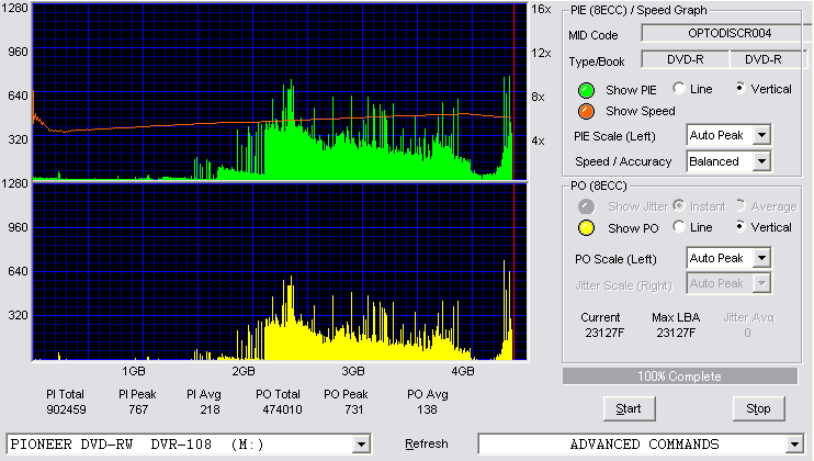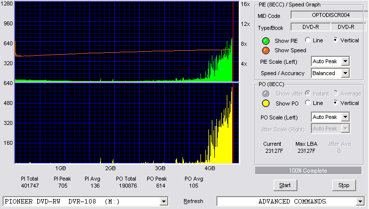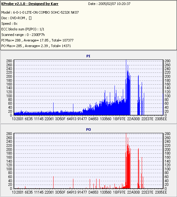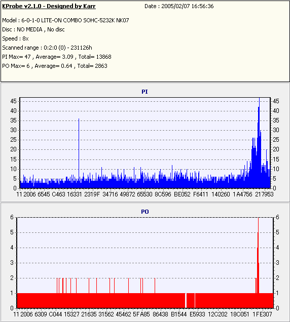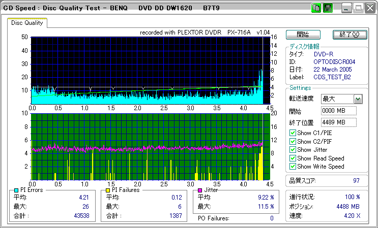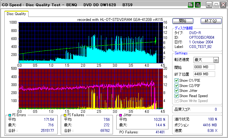 一見PX-708A2と相性が良いような感じだが、よく見るとPOFを吐いているし、他のグラフでも一箇所だけ変にエラー値の高い部分がある。