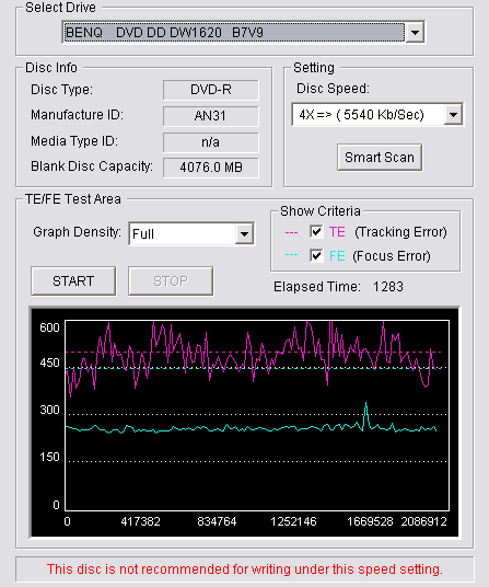 CDSpeed + BenQ DW1620Rの品質テスト(6x CAV PIE/PIF/Jitter/POF)