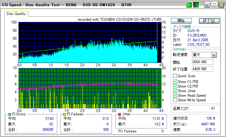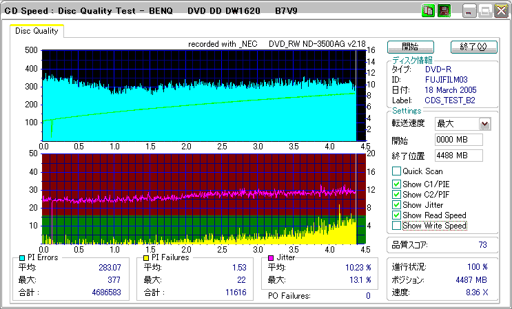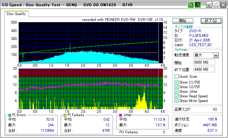 しかしこのメディア、低速で焼いてもあまり変わらない感じ。 |