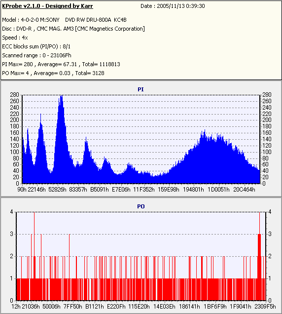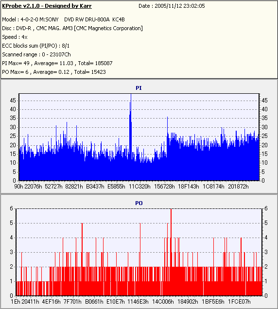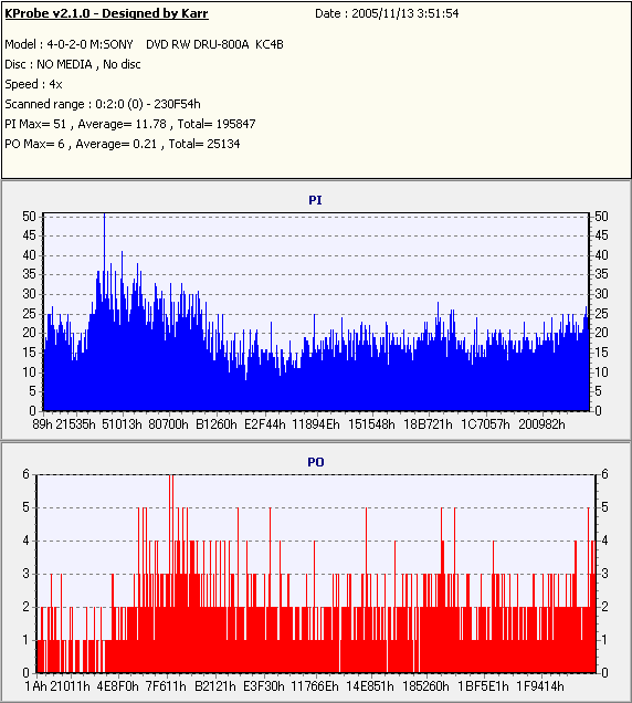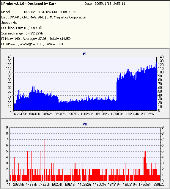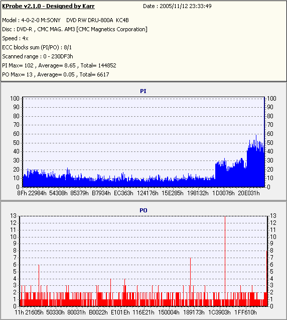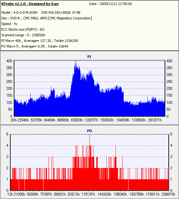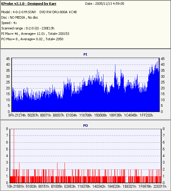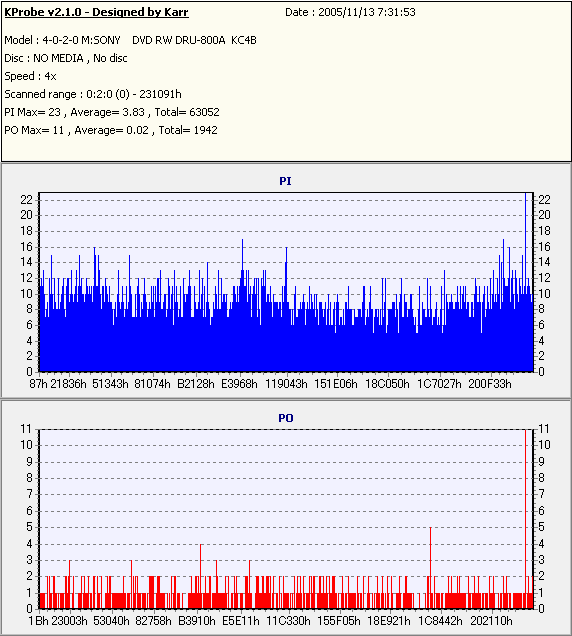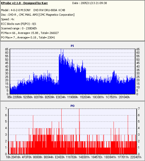 kprobe with SONY DRU-800A_BLER 8/1ECC Sum -DRU-800AとkprobeでのPIE/PIF計測- |