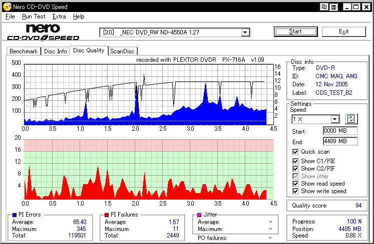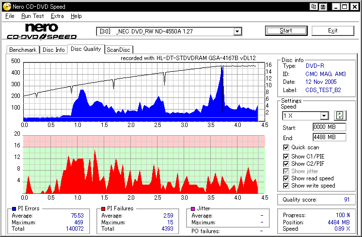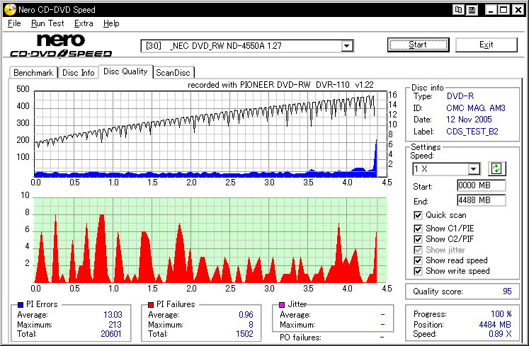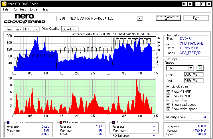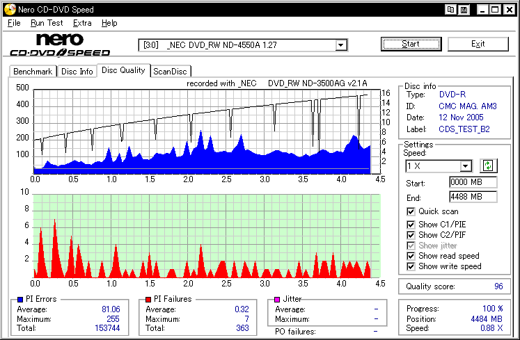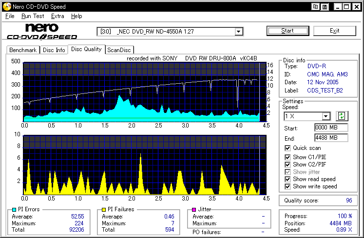 CDSpeed with NEC ND-4550A_Disc Quality Test -ND-4550Aでのディスク品質チェック- |
