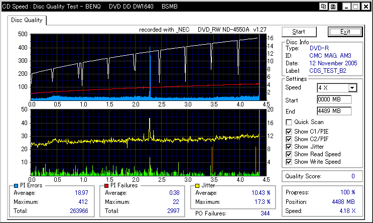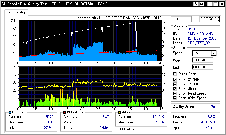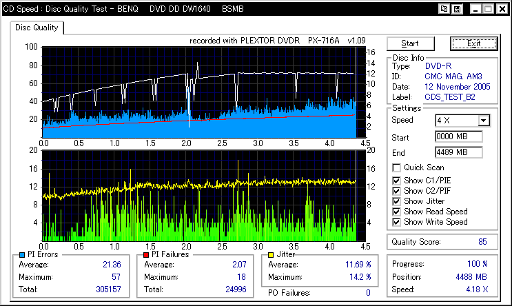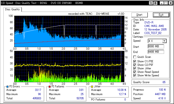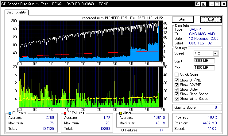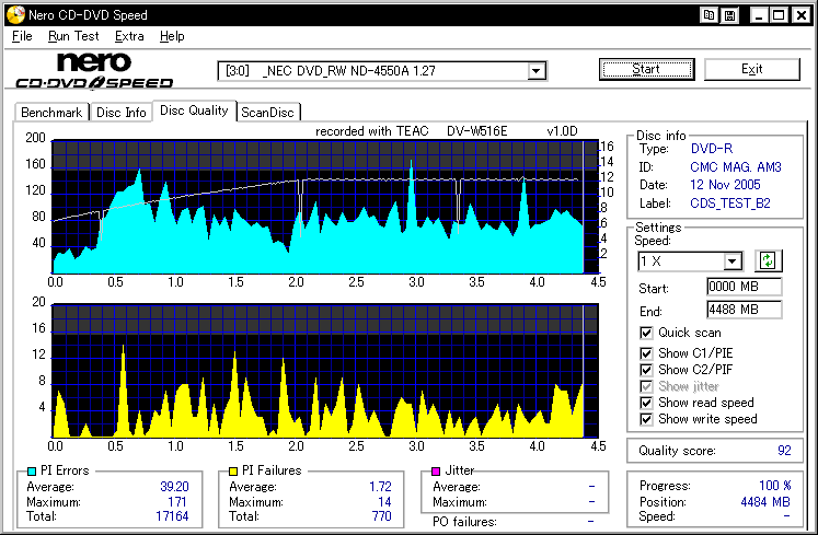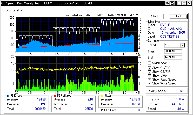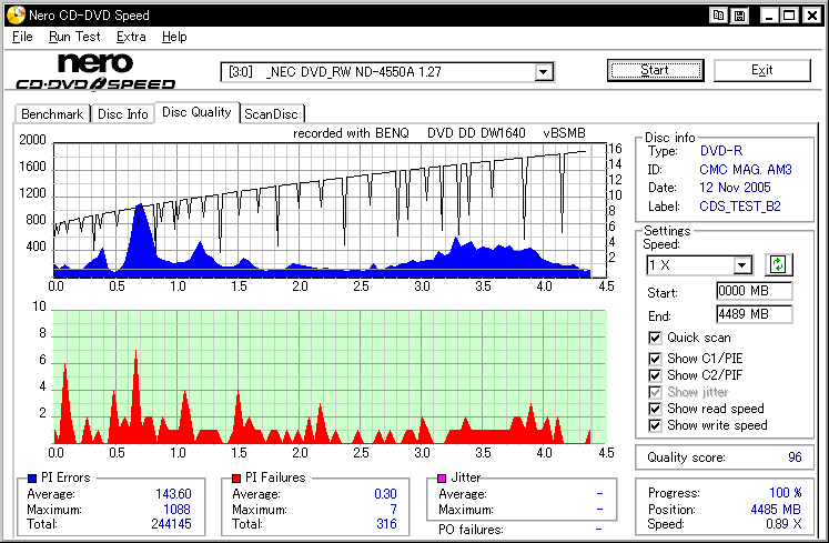 CDSpeed with BenQ DW1640_Disc Quality Test -DW1640でのディスク品質チェック- |