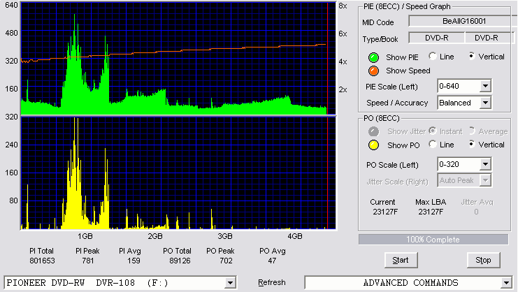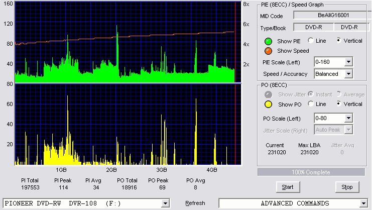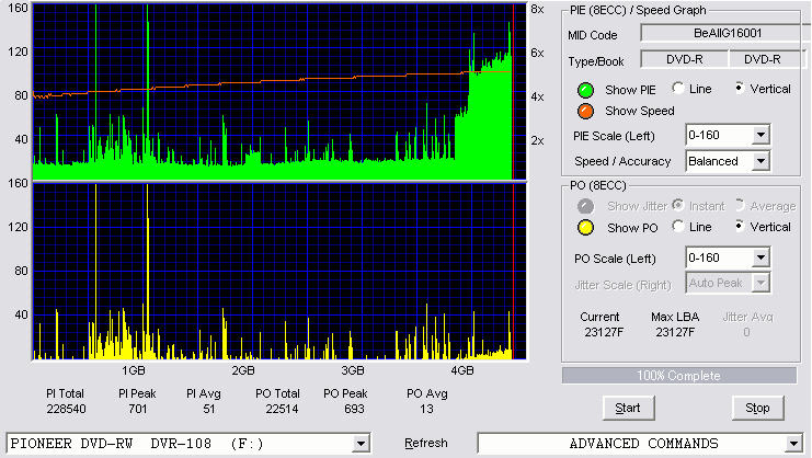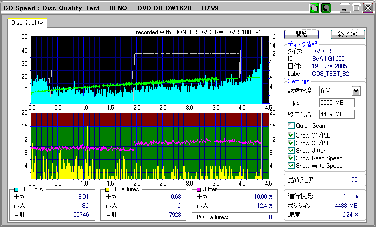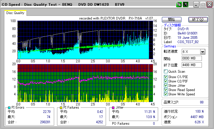 PlexTools Professional + PLEXTOR PX-716AのPI/PO 8ECC Sum Test(速度2 クリックで詳細表示) ![]() PlexTools Professional + PLEXTOR PX-716AのTA Test(クリックで詳細情報を表示) ![]() ![]() ![]() CDSpeed + BenQ DW1620Rの品質テスト(6x CAV PIE/PIF/Jitter/POF) ![]() DVDInfoPro + Pioneer DVR-108のPI/PO Test(PIE/POE) |