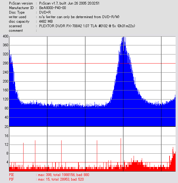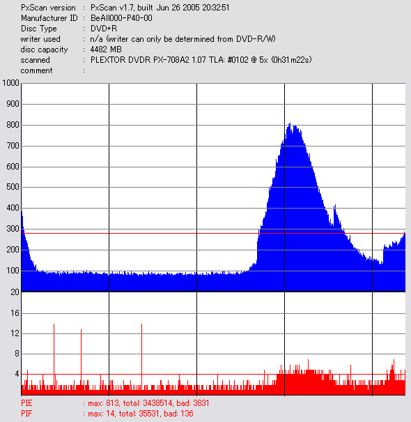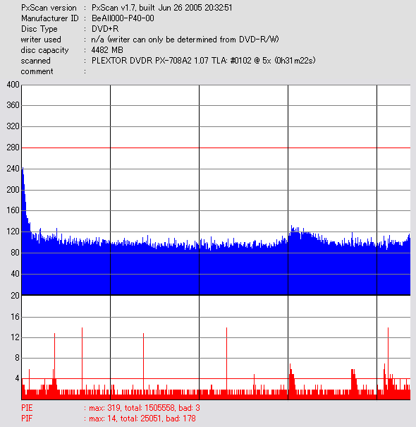 PLEXTOR PX-708A2(PX-712A OEM) ... PXScan PI/PO 8ECC Sum Test (5x CAV) |