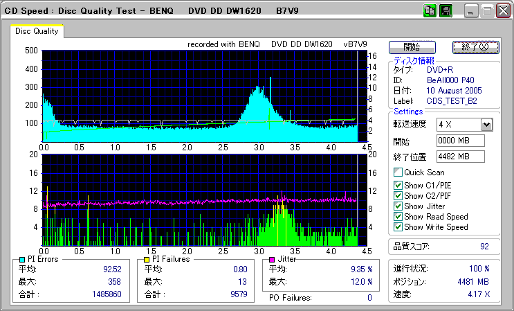 BenQ DW1620R_... CDSpeed Disc quality test (8/4ECC Sum 4xCAV) |