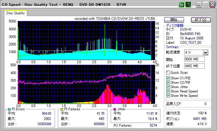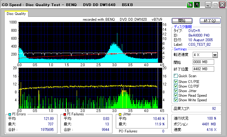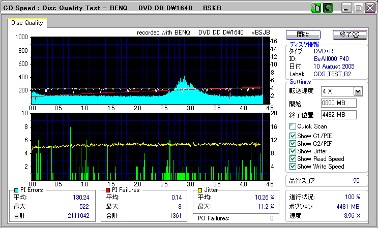 BenQ DW1640_... CDSpeed Disc quality test (8/4ECC Sum 4xCAV) |