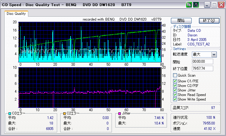 Jitter右上がり。というか、16倍ならCLVで焼いて欲しかった。 |