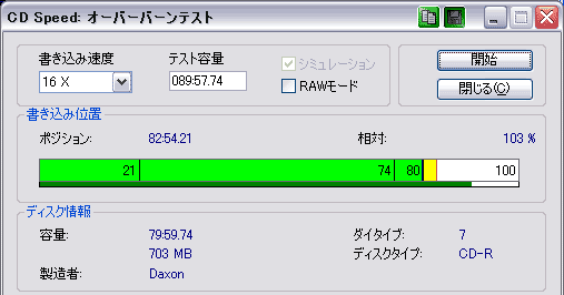 GigaRecでは109min弱程度まで焼ける模様。 |