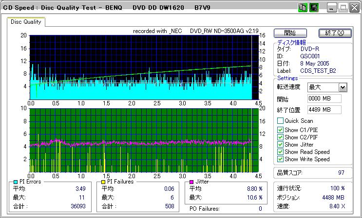 しかし今回購入したものは文句なしに当たりだったようで、下手をすれば国産をも凌駕する数値を叩き出している。