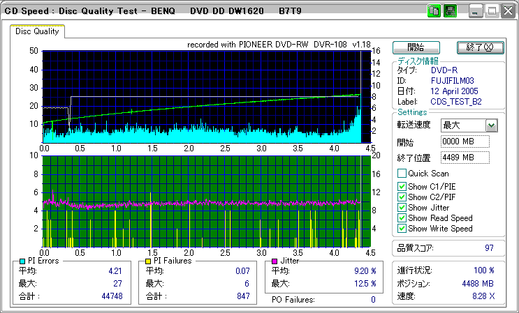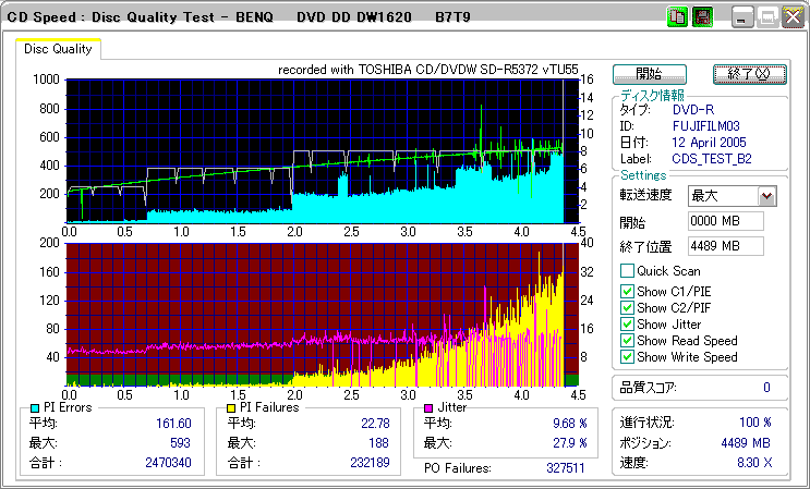 結果はオーム電機のものよりも若干良い程度で、あまり良いグラフではない。
